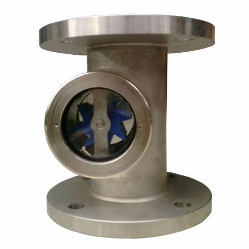 叶轮流量视镜又称叶轮水流指示器,属视镜类仪表,主要是用于观察管道内介质流动情况,是保证现场工况安全的必要仪表。当管道里的介质通过叶轮视镜时会推动表体里面的叶轮转动,通过视窗观察叶轮的转动确定管道是否有介质流动。